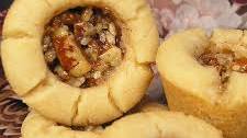 Rich and creamy pecan pie filling centered in a soft sugar cookie cup. A pleasing taste of cookie and pie in one bite. Yum!